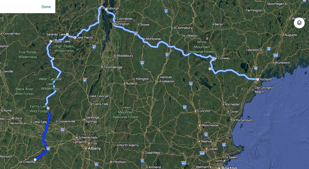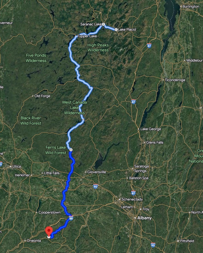 Distance: +200 miles (scenic route via Arietta and Saranac Lake)