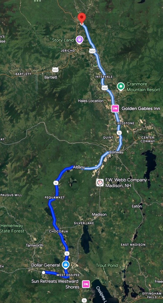 Distance: +128 miles (via Kancamagus Highway)