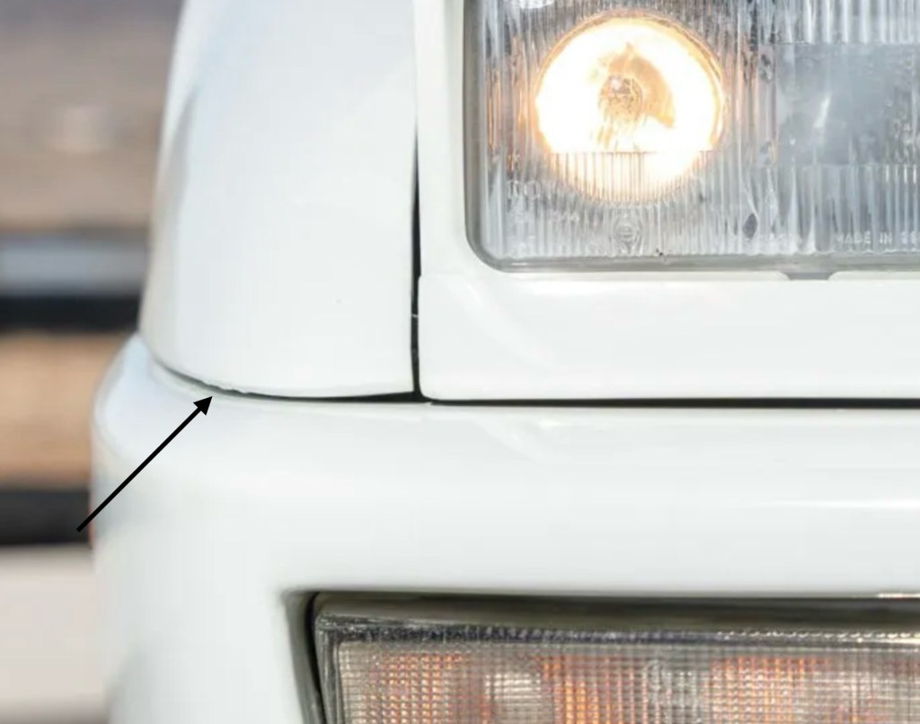 - Possible paint issue – runs? — under front passenger’s fender.