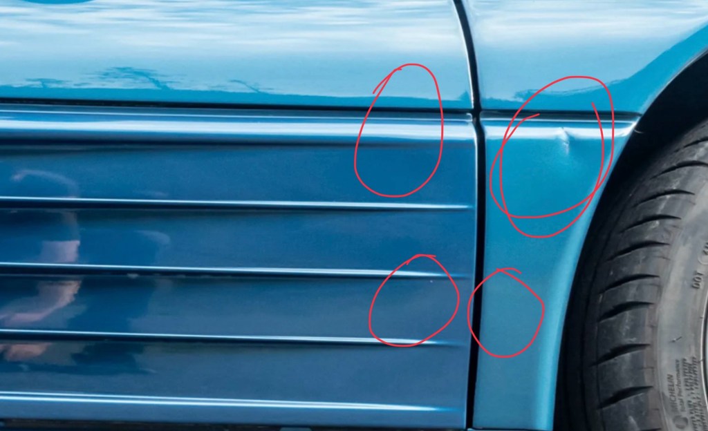 I’m surprised so many features of the interior are clean and intact on this clearly hard-living 50k mile car; features I don’t find nearly as nice on examples with a quarter of the miles; yet the body looks like it was painted in an Maaco parking lot. How does that happen?