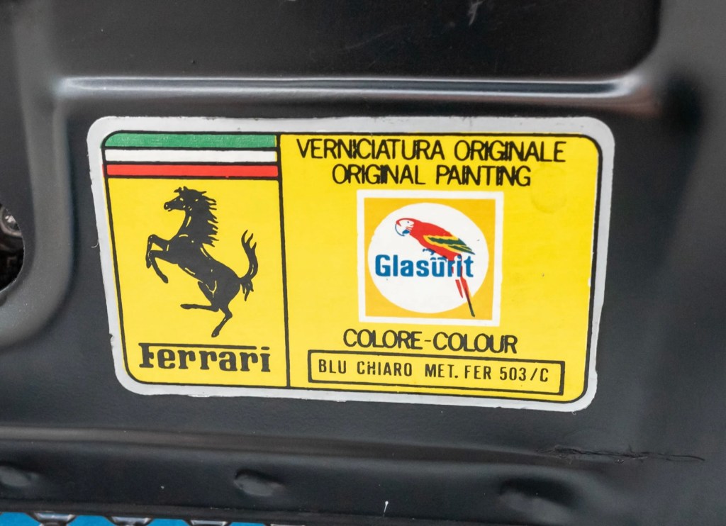 I’m not sure, but it wouldn’t shock me if this car left Maranello wearing a different hue. I’m not saying I see evidence of that, but when cars show up in desirable and rare colors I am always skeptical, especially when they show signs of paint work.