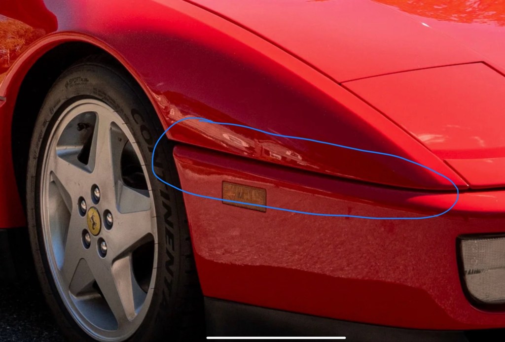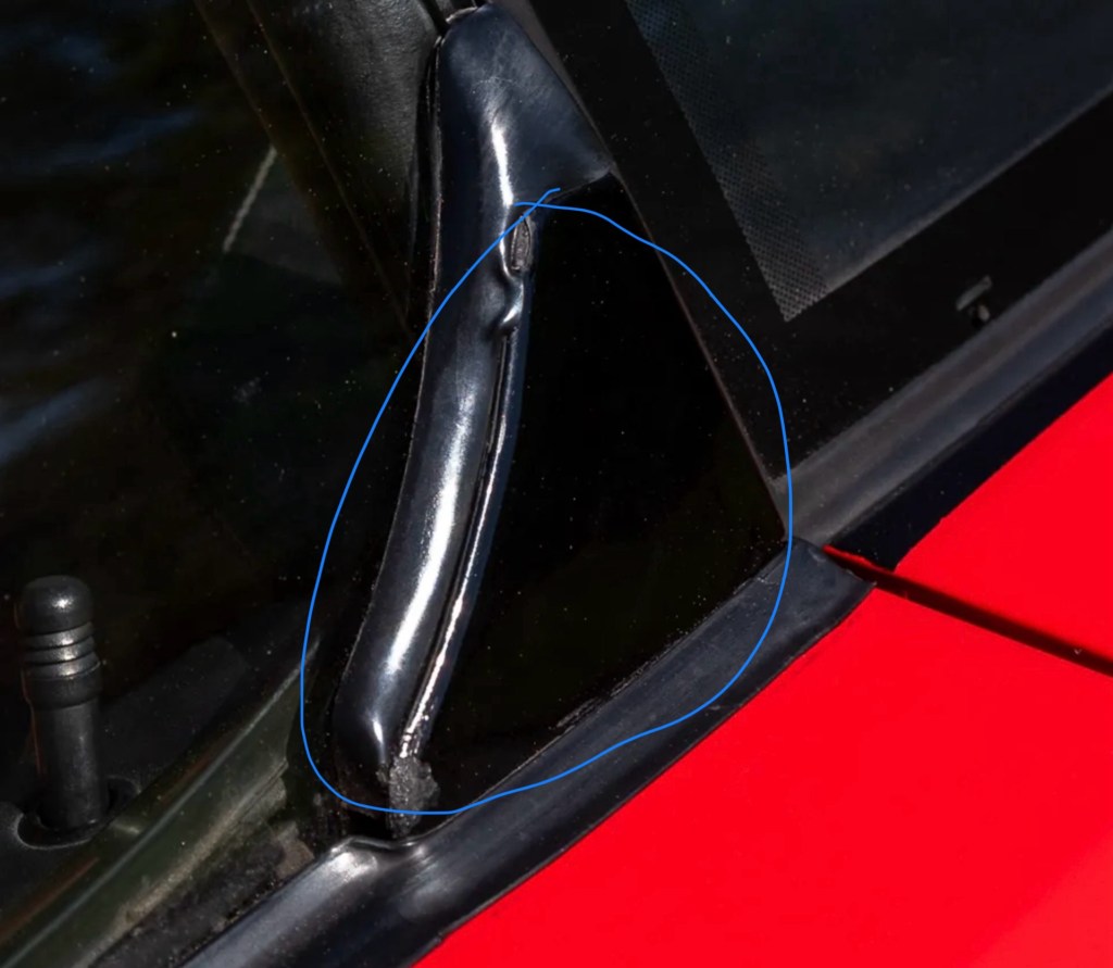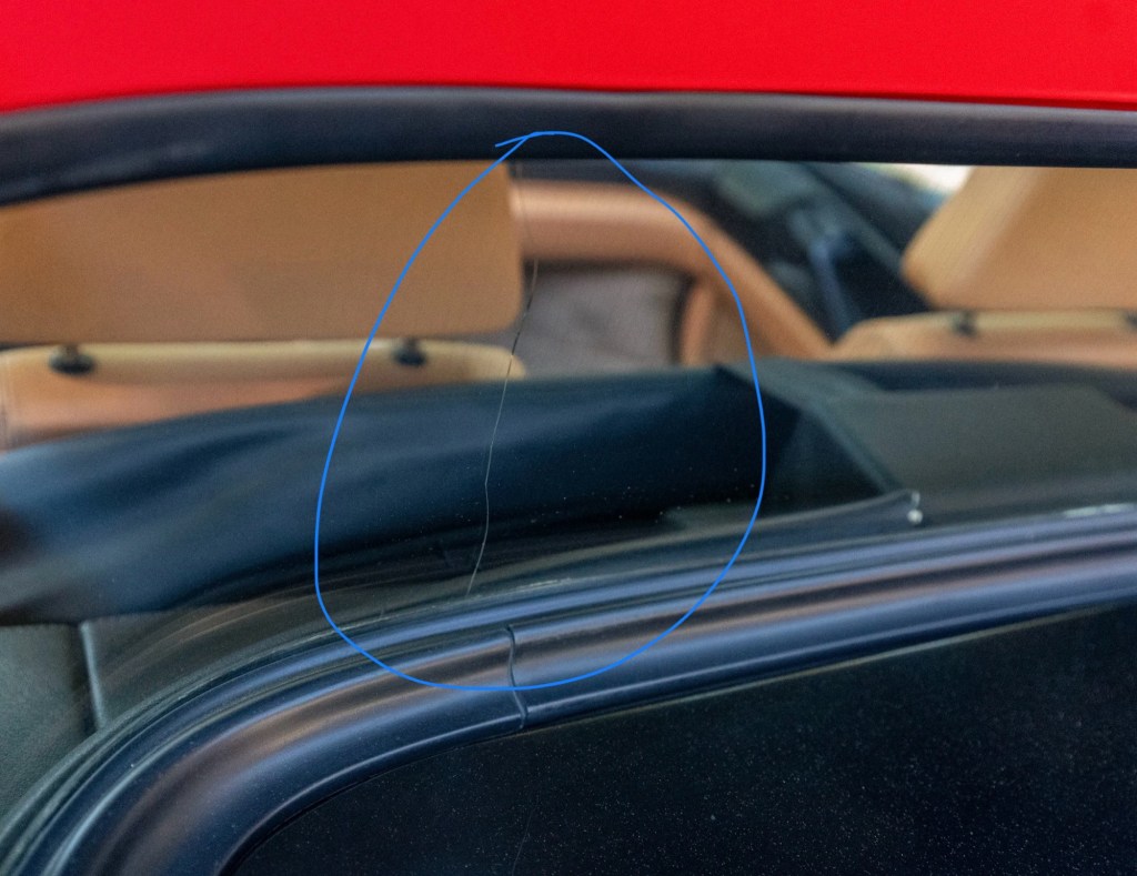 Our car presents nicely and honestly and appears well-cared-for. If it weren’t for the rear glass (see below) I think this 24k miles example would bring very strong money; though it could have used a detail, resurfaced wheels, and a proper photo shoot. Those are all unforced errors on the seller.