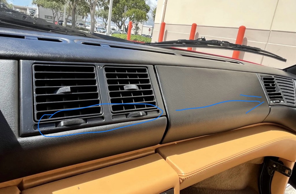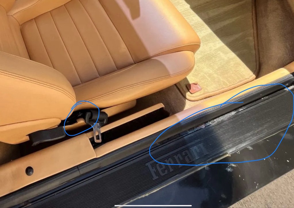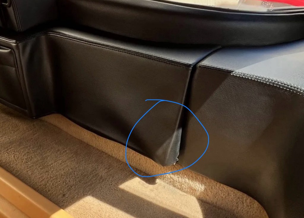 With just 21K miles on the odometer and in honestly the best color combo for one of these, red over tan, our car looks extremely clean at first glance. And while it may truly be as clean as it appears, there are some things not yet shown in the gallery that I’d recommend investigating before bidding.