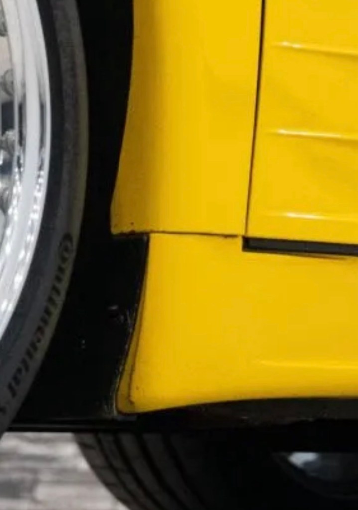 Yellow over black, and in what looks to be excellent condition (nitpicks below), our car comes with the extremely desirable (and expensive to source) Speedline “Alessio” wheels which add to its aggression.